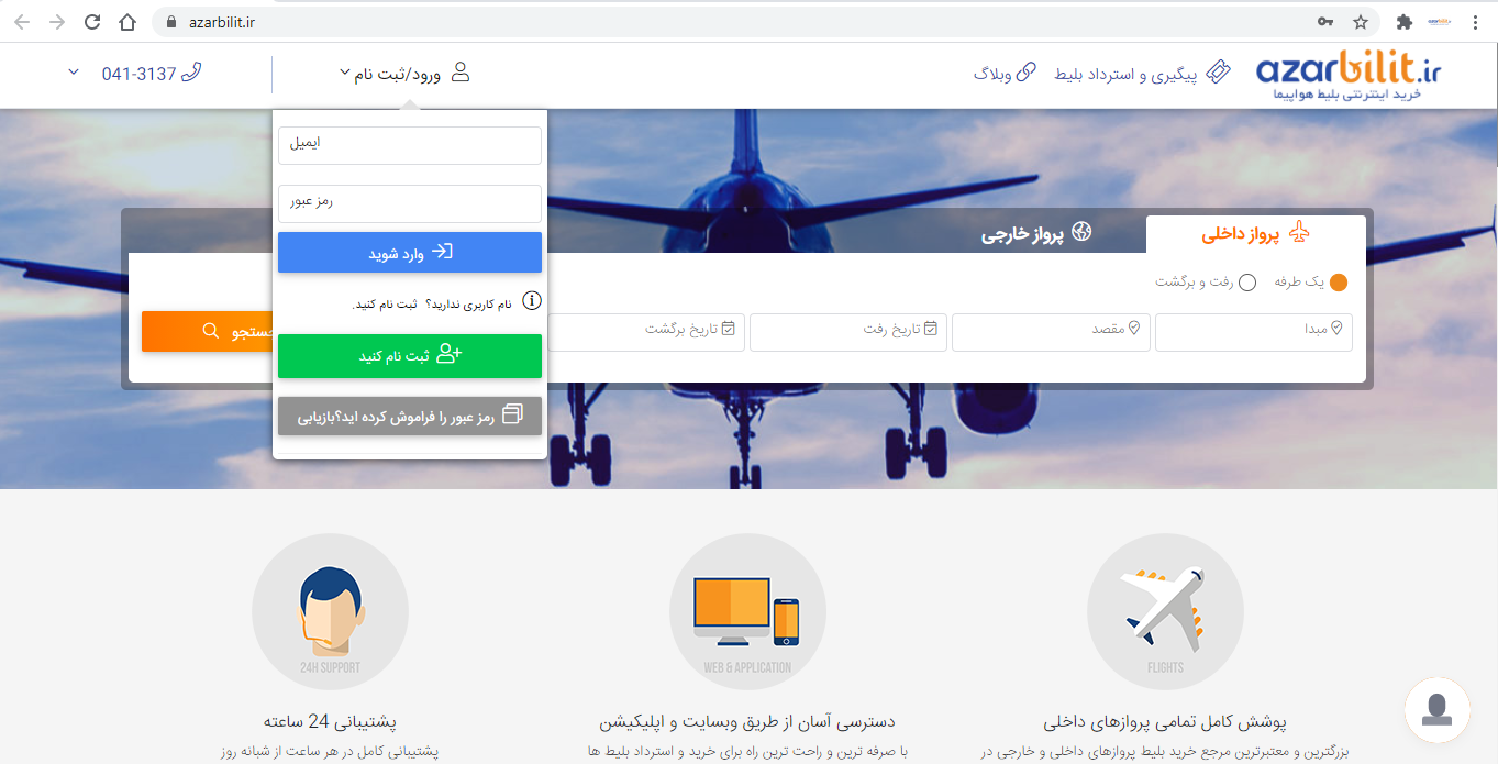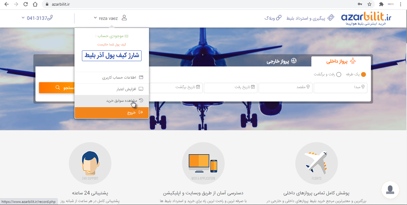 >راهنمای خدمات وب سایت آذربلیط در پرواز داخلی و خارجی