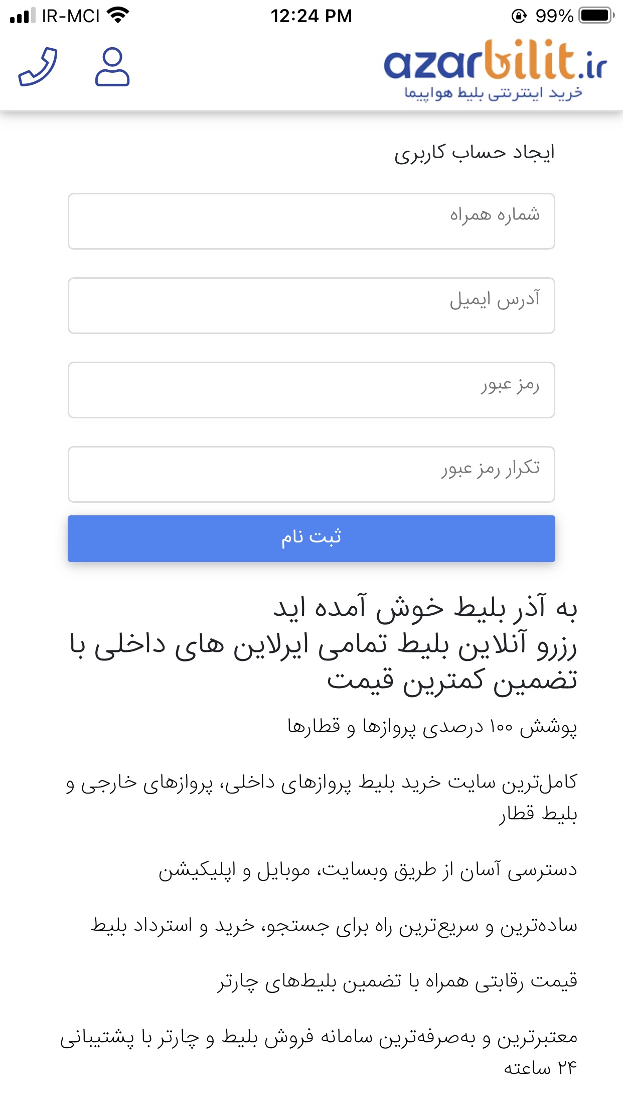 >راهنمای ثبت نام در اپلیکیشن ios آذربلیط